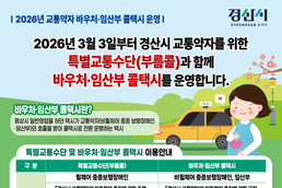 [경산/김근해기자] 경산시(시장 조현일)는 교통약자와 임산부의 이동 편의 증진을 위해 ‘교통약자 바우처·임산부 콜택시 사업’을 3월부터 본격 시행한다고 밝혔다. 본 사업은 평상시 일반 영업을 하던 택시가 교통약자(비휠체어 중증보행장애인, 임산부)의 호출 시 바우처·임산부 콜택시로 전환 운행하는 방식으로, 기존 특별교통수단(부름콜)의 한계를 보완해 대기 시간은 줄이고, 이동 선택지는 넓혀 보다 신속하고 유연한 교통 서비스 제공을 목표로 한다. 운영에 앞서 2월 중 시스템 구축과 사업자 교육 등 도입 준비를 완료하고, 여러 차례 시범 운영과 테스트를 거친 뒤 3월부터 정상 운행에 들어갈 예정이다. 운행 대상은 비휠체어 중증보행장애인과 임신 진단일부터 출산 후 1년 이내의 임산부이며, 경산시 관내 법인·개인택시 50대가 참여한다. 운행 시간은 매일 오전 7시부터 오후 10시까지, 운행 범위는 경산시 전 지역이다. 기본 요금은 5km까지 1,100원이며, 거리가 늘어날 경우 1km당 200원이 추가된다. 이용 요금은 최대 2,200원을 넘지 않으며, 하루 4회, 한 달 10회까지 이용할 수 있다. 본 서비스를 이용하려면 사전에 이용자 등록을 완료해야 한다. 바우처 콜택시는 경산시 이동지원센터를 통해 등록 후 경북 광역이동지원센터(☎1899-7770)로 호출해 이용할 수 있으며, 임산부 콜택시는 ‘K맘택시’ 앱을 통해 등록 및 호출이 가능하다. 호출이 접수되면 바우처·임산부 콜택시로 배차·운행된다. ※ 사전 등록 : 2월 23일(월)부터~27일(금) / 상시 등록 : 3월 3일(화)부터 아울러, 이번 사업은 휠체어 이용 중증 보행 장애인을 위한 특별 교통수단(부름콜)과 기능을 분리해 운영함으로써, 서비스 대상별 특성을 고려한 맞춤형 이동 지원 체계 구축이 가능해질 것으로 기대된다. 다만, 기존 특별교통수단과 바우처·임산부 콜택시는 중복 등록 및 이용이 불가하다. 경산시(시장 조현일)는 “이번 사업을 통해 교통약자의 이동 편의가 실질적으로 개선되기를 기대한다”며, “임산부가 안심하고 이동할 수 있는 환경 조성에도 도움이 될 것으로 본다”고 밝혔다. 자세한 사항은 경산시 이동지원센터(☎053-802-1700), 경산시 교통행정과(☎053-810-5274)로 문의하면 된다.