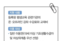 평생교육이용권 배움의 비용이 부담돼 망설였던 분들께 반가운 소식이에요. 교육부와 17개 시·도가 함께 추진하는 '평생교육이용권' 사업이 2026년에도 이어지고 있어요. 올해는 총 11만 5000명을 지원하고 선정되면 1인당 연간 35만 원을 받을 수 있어요. 신청은 3월 9일부터 시작해 지역별 공고에 따라 순차적으로 진행되고 있어요. 평생교육이용권은 대상에 따라 나뉘어 운영돼요. 일반 이용권은 19세 이상 성인 가운데 기초생활수급자와 차상위계층 등을 우선 대상으로 하고, 장애인 이용권은 19세 이상 등록장애인, 노인 이용권은 65세 이상, 인공지능(AI)·디지털 이용권은 30세 이상 성인을 대상으로 해요. 지원금은 현금으로 주는 방식이 아니에요. 선정되면 본인 명의의 NH농협 채움카드에 35만 원이 포인트 형태로 지급돼요. 이 포인트로 평생교육 강좌 수강료와 교재비를 결제할 수 있어요. 자격증, 어학, 문화·예술, 이미지·영상 제작 같은 다양한 강좌를 들을 수 있어 자기계발이나 재취업 준비에도 활용하기 좋아요. 또 하나 장점은 지역 제한이 없다는 점이에요. 평생교육시설, 지역평생학습관, 평생직업교육학원, 복지관 등 등록기관이라면 온·오프라인 강좌 모두 이용할 수 있어요. 올해는 중요한 변화가 있어요. 그동안은 국가장학금을 받으면 이용권 신청에 제약이 있었는데 이제는 중복 수혜가 가능해졌어요. 덕분에 대학생과 청년층도 폭넓게 활용할 수 있어요. 신청방법은 유형별로 조금 달라요. 일반·노인·AI·디지털 이용권은 평생교육이용권 누리집(www.lllcard.kr)에서 신청할 수 있고 장애인 이용권은 정부24(plus.gov.kr)에서 신청해요. 다만 지역마다 접수일정과 자격기준, 발표일이 다르기 때문에 반드시 주민등록상 주소지 기준 공고를 확인하는 것이 중요해요. 평생교육이용권은 단순한 수강료 지원을 넘어 배움을 통해 삶의 기회를 넓혀주는 제도예요. 자격증을 준비하는 분, 새로운 기술을 익히려는 중장년, 디지털 교육이 필요한 분까지 누구에게나 도움이 될 수 있어요. 교육비가 부담돼 망설이고 있었다면 이번 기회를 꼭 놓치지마세요.
