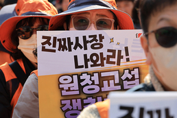 [한국방송/진승백기자] 개정 노동조합법이 시행된 지 한 달이 지난 가운데, 전국 372개 원청 사업장을 대상으로 1011개 하청 노조·지부·지회가 교섭을 요구한 것으로 집계됐다. 고용노동부는 4월 10일 법 시행 1개월을 맞아 현장 운영 현황을 발표하고, 제도가 법령에서 예정한 절차에 따라 단계적으로 안착하고 있다고 평가했다. 부문별로는 민간 부문에서 216개 원청을 대상으로 616개 하청 노조가, 공공 부문에서는 156개 원청을 대상으로 395개 하청 노조가 교섭을 요구했다. 상급단체별로는 민주노총 소속이 356개 사업장으로 가장 많았고, 한국노총 344개 사업장, 미가맹 52개 사업장이 뒤를 이었다. 원청 사업장 기준으로 노조가 2개 이상인 곳은 144개소, 3개 이상인 곳은 236개소였다. 교섭요구 사실을 공고하며 실제 절차에 들어간 원청은 33개소이며, 이 중 교섭 요구 노동조합 확정공고까지 완료한 곳은 19개소다. 한동대학교는 4월 9일 하청 노조와 첫 상견례를 갖는 등 실질적 교섭에 돌입했다. '노란봉투법'(노동조합 및 노동관계조정법 2·3조 개정 법률) 시행 첫날인 10일 서울 세종로에서 열린 민주노총 투쟁 선포대회에서 민주노총 조합원들이 구호를