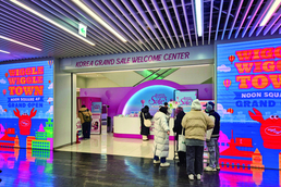 [한국방송/최동민기자] 코리아그랜드세일 1월 12일 오전 영하 5도의 추운 날씨에도 서울 명동 눈스퀘어 1층에 있는 '코리아그랜드세일 웰컴센터'는 한국을 찾은 외국인 관광객들로 북적였다. 웰컴센터는 한국 관광 활성화를 위해 열린 2026 코리아그랜드세일 기간 동안 외국인 관광객에게 여행 정보와 할인 혜택, 통역 서비스, 다양한 문화 체험 프로그램 등을 제공한다. 명동을 찾은 외국인 관광객에게는 지나칠 수 없는 베이스캠프 같은 곳이다. 이날도 중국과 일본, 대만, 홍콩 등지에서 온 관광객들은 각종 이벤트에 참여해 마스크팩과 한국을 상징하는 여러 그림으로 만든 스티커, 키링 등을 선물 받았다. 면세점과 드러그스토어, 유명 의류 브랜드 매장 등에서 쓸 수 있는 쿠폰팩도 함께였다. 웰컴센터에선 공깃돌, 딱지, 제기차기 등 한국의 전통놀이와 함께 애니메이션 '케이팝 데몬 헌터스'로 유명해진 '갓'을 써볼 수 있다. 축제 로고가 그려진 셀프 사진 부스에선 카메라 셔터음과 함께 연신 웃음소리가 터져 나왔다. 웰컴센터 안내직원은 "하루 평균 600여 명이 방문한다"며 "관광객에게 인기인 브랜드의 쿠폰팩과 함께 다양한 선물을 제공하니 다들 좋아한다"고 말했다. 선물 가운데
