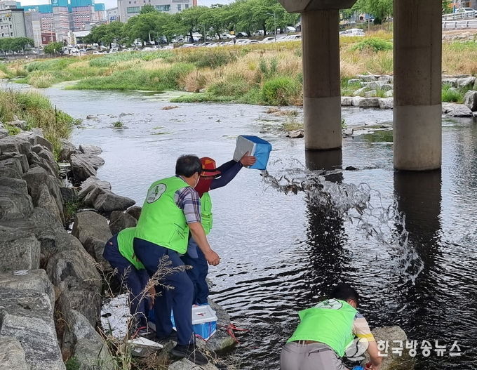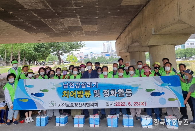 [경산/김근해기자] 경산시자연보호협의회(회장 석부홍)는 23일에 경산의 대표 하천인 남천강 살리기 운동의 일환으로 생태하천 복원을 위한 미꾸라지 1만 5천여 마리 방류 및 남천강변 정화 활동을 했다.