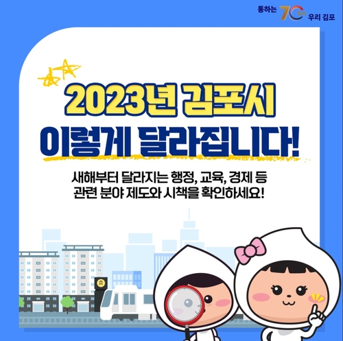 시는 12일 2023년부터 김포에 적용될 여러 분야의 정보를 소개했다. 해당 내용들은 김포시청 블로그 '2023년 김포시 이렇게 달라집니다'를 통해서도 확인 가능하다.