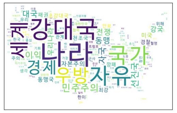 미국 하면 떠오르는 이미지로는 ‘강대국 우방 자유 선진국 동맹’ 등이 많이 언급됐다. 미국이 한국에 영향을 주는 분야는 국방/안보에 이어 정치/외교(18.9%) 경제(16.1%) 과학/기술(2.8%) 사회/문화(2.4%) 교육(0.7%) 순으로 조사됐다.