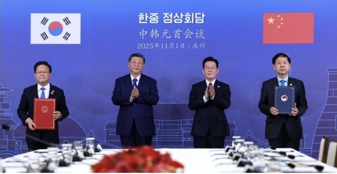 [한국방송/박기문기자] 이재명 대통령과 시진핑 중국 국가주석은 1일 정상회담이 끝난 후 양 정상 간 논의된 민생분야 실질 협력 구상을 구체화하기 위해 양국 중앙은행 간 체결된 통화스와프 계약서 및 양국 정부 부처 간 체결된 6건의 MOU에 대한 교환식을 가졌다.