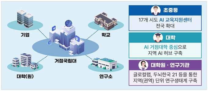 특히 거점대학이 지역 인공지능 인재양성의 중심 역할을 하며 지역 대학-기업-연구소 등이 협력하는 지역 인공지능 인재양성 체계의 중심이 되도록 할 방침이다.