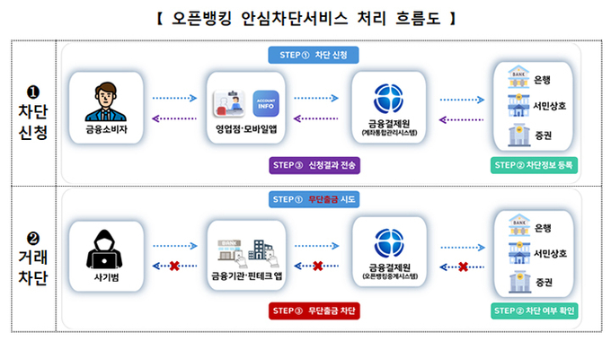 특히 사기범이 국내 금융거래의 편의성을 악용해 피해규모가 확대되는 사례가 지속되자 금융당국은 금융소비자가 직접 선택해 오픈뱅킹을 차단할 수 있는 별도 안전장치 구축을 추진했다.