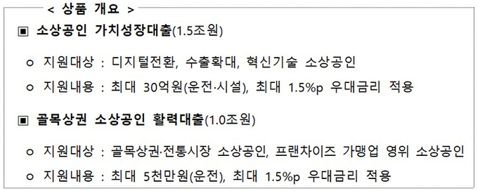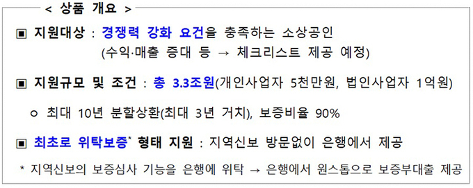 상품 개요 (맞춤형 소상공인 금융지원 방안 및 소상공인 신규자금 금융지원 방안 후속조치)