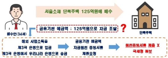 #1 서울 단독주택을 125억 원에 현금으로 매입한 외국인 A 씨가 적발됐다. 국내 연소득이 9000만 원 수준인 A 씨는 해외에서 벌어들인 사업소득을 제3국 은행으로 송금한 뒤 이 자금을 활용했으나, 구체적인 소득 내역을 소명하지 않아 자금 출처가 불분명한 것으로 분류됐다.