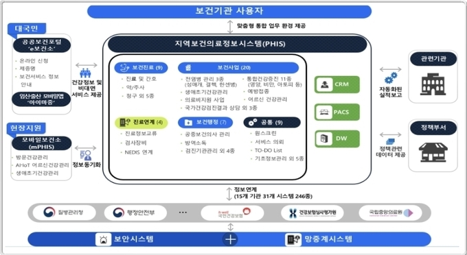 * 전국 3,600여개 지역보건의료기관(보건의료원, 보건소, 보건지소, 보건진료소 등)의 진료·예방접종 및 검진과 제·증명발급, 건강관리서비스 등을 지원하는 정보시스템, 일평균 6.4만 명 이용 중