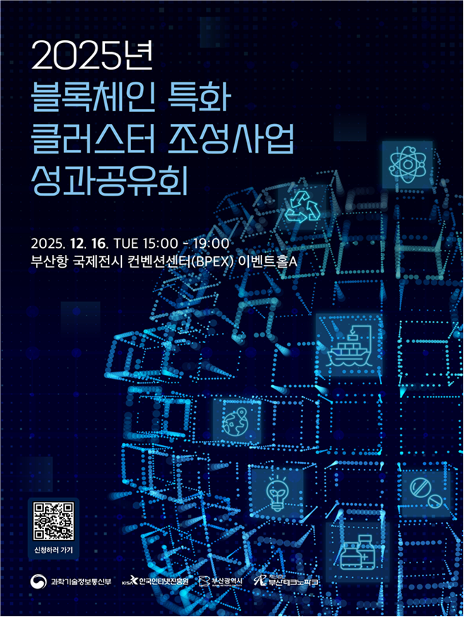 [부산/문종덕기자] 부산시(시장 박형준)는 오늘(16일) 오후 3시 부산항국제전시컨벤션센터에서 「2025년 블록체인 특화 클러스터 조성」 사업 성과공유회를 개최한다고 밝혔다.