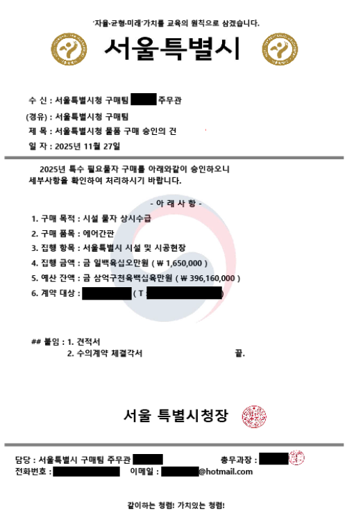 최근 확인된 사칭 수법은 실제 서울시에서 사용하는 것과 유사한 명함이나 공문서를 위조해 실제 발주처럼 위장한 뒤 ‘대리 납품’이나 ‘긴급 구매’를 명목으로 업체에 선입금을 유도하는 방식이다.