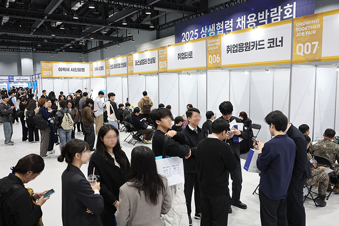 21일 서울 강서구 코엑스 마곡에서 열린 '2025 상생협력 채용박람회'를 찾은 구직자들이 부대행사관 부스를 둘러보고 있다. 2025.10.21 (사진=연합뉴스)