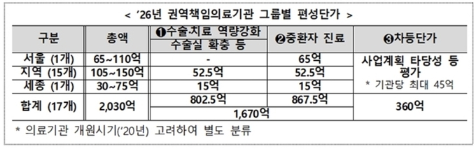 '26년 권역책임의료기관 그룹별 편성단가