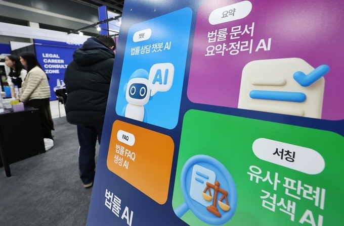 서울 서초구 aT센터에서 열린 '2025 대한민국 법률 산업 박람회'에 법률 관련 인공지능(AI) 서비스 자료가 전시되어 있다. 2025.12.3(사진=연합뉴스)