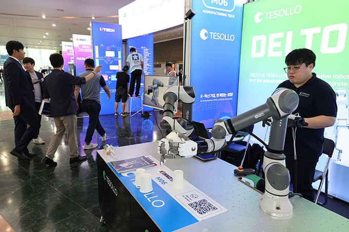 1일 서귀포시 중문동 제주국제컨벤션센터에서 열린 중소기업 기술·경영 혁신대전에서 테솔로(Tesollo) 부스 관계자가 로봇 그리퍼를 시연하고 있다. 2025.9.1 (사진=연합뉴스)