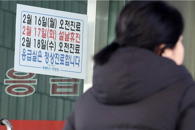 보건복지부도 설 명절 의료대책을 발표했다. 설 당일인 17일에는 전국 2276개 병의원이 진료한다. 14일부터 18일까지 연휴 기간 하루 평균 병의원 9655곳, 약국 6912곳이 문을 열 예정이다.