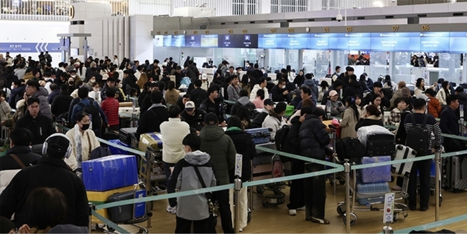 설 명절 연휴를 앞둔 12일 오전 인천국제공항 1터미널 출국장이 이용객들로 붐비고 있다.(ⓒ뉴스1)