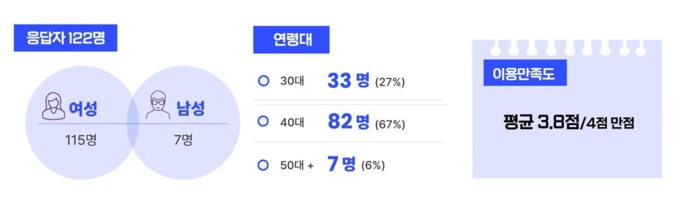 2025년 우리동네키움센터 아침돌봄 서비스 만족도 조사는 아침돌봄 서비스 이용자 중 122명이 응답했으며, 온라인 조사 결과 평균 만족도는 3.8점으로 나타났다.