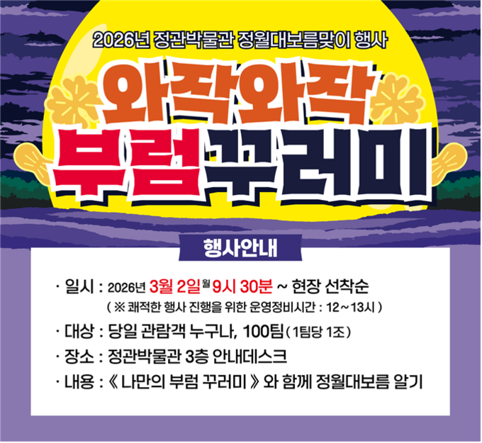이번 행사는 정월대보름 당일인 3월 3일이 박물관 대체 휴관일인 관계로 그 전날에 진행된다.