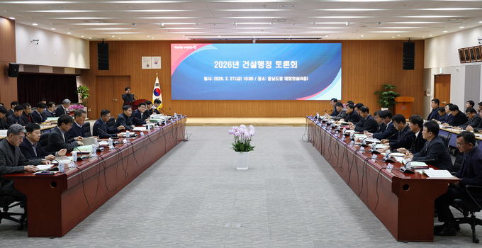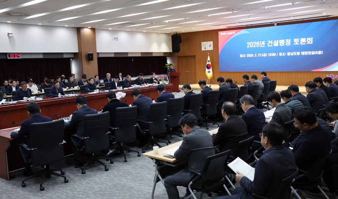 [충남/오창환기자] 충남도는 27일 도청 대회의실에서 도·시군 건설행정 담당 공무원 100여 명이 참석한 가운데, ‘2026 건설행정 토론회’를 개최했다.