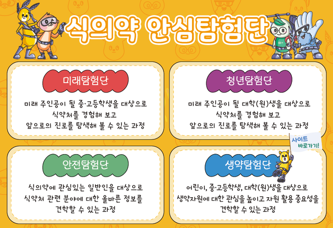 * 어린이·청소년 등 대상으로 식약처의 역할과 주요 업무를 소개하고, 시험검사 실습 등 현장 체험 기회를 제공하는 프로그램