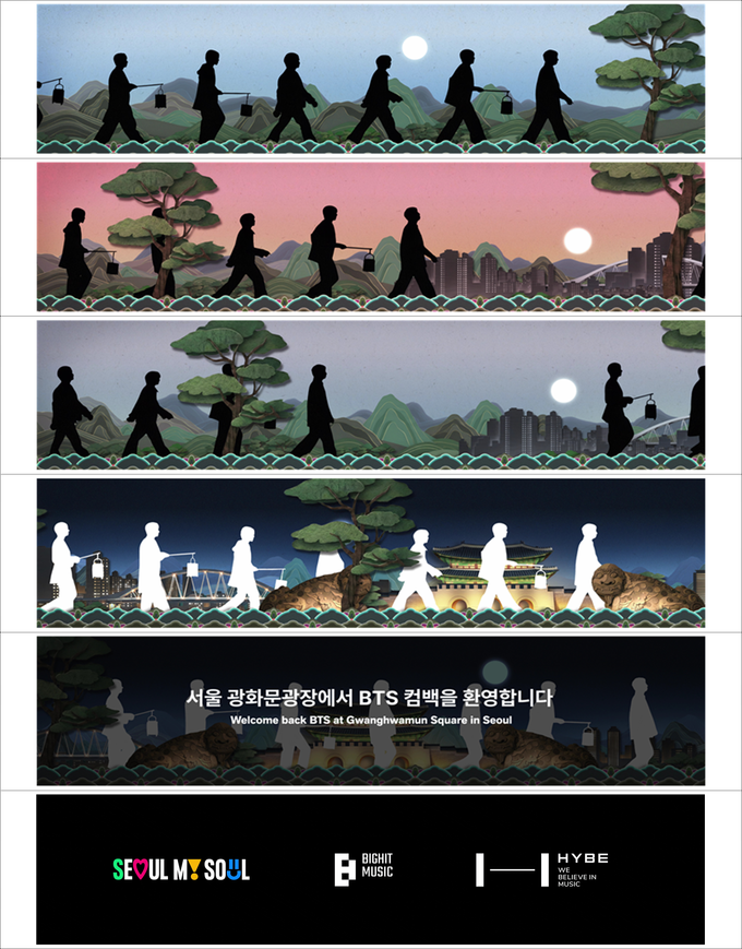 방탄소년단 컴백 관련 영상과 함께 한국어와 영어로 된 글로벌 환영메시지 ‘서울 광화문광장에서 BTS 컴백을 환영합니다(Welcome back BTS at Gwanghwamun Square in Seoul)’도 함께 송출해 전 세계인에게 서울시의 글로벌 이미지도 알린다.