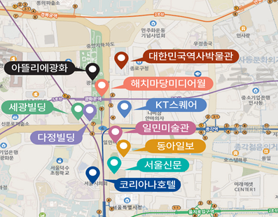 ‘BTS 더 시티 아리랑 서울’은 ▴해치마당 미디어월 ▴아뜰리에 광화 ▴대한민국역사박물관 ▴KT스퀘어 ▴세광빌딩 ▴다정빌딩 ▴일민미술관 ▴코리아나호텔 ▴동아일보 ▴서울신문 10곳의 미디어파사드에서 시간당 3회(5분, 25분, 45분), 20분 간격으로 송출된다.