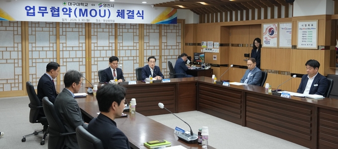 [영천/김근해기자] 영천시는 30일 시청 영상회의실에서 대구대학교와 유휴부지 활용 및 지역 발전을 위한 상호협력 업무협약(MOU)을 체결했다.