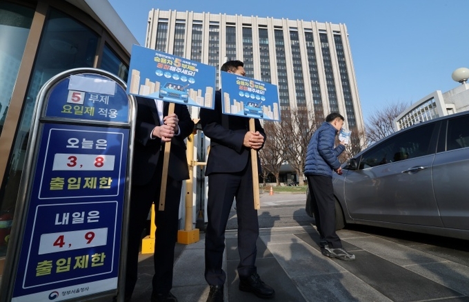 ▲ 원유 안보위기 '주의' 경보 발령에 따른 공공 차량 5부제 캠페인을 벌이고 있는 모습. 2026.3.25 (ⓒ뉴스1)