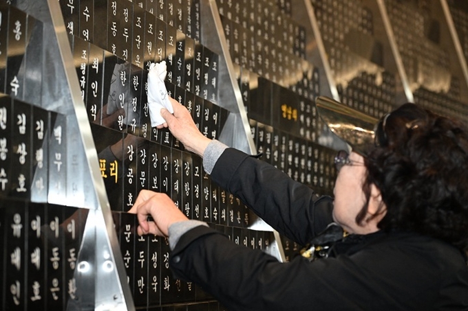 3일 오전 제주시 봉개동 제주4·3평화공원에서 열린 제78주년 제주4·3희생자추념식 전 위패봉안관을 찾은 유족들이 희생자를 추모하고 있다.(사진=연합뉴스)