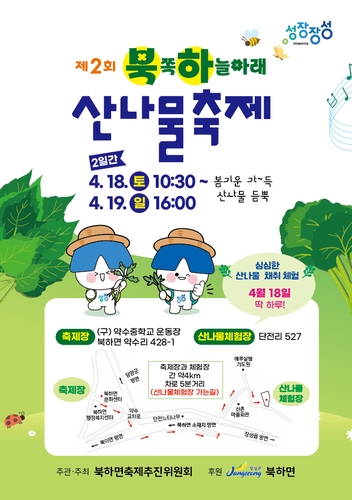 장성군 북하면의 특색을 담은 마을축제인 '제2회 북쪽 하늘아래, 산나물 축제'가 18일부터 19일까지 이틀간 옛 약수중학교 운동장에서 열린다.