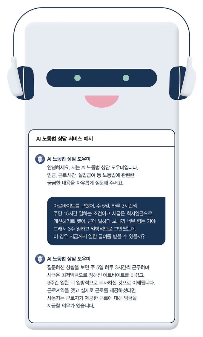 A씨처럼 믿을 만한 노동법 상담을 찾는 이들에게 무료로 서비스를 제공하는 곳이 있다. 인터넷만 사용할 수 있다면 언제 어디서나 상담이 가능하다. 바로 고용노동부가 운영하는 'AI(인공지능) 노동법 상담' 서비스다. 임금, 근로시간, 퇴직금, 실업급여 등과 관련한 상담을 제공하는 이 서비스는 시행 첫해인 2025년 한 해 동안 총 11만 7000건의 상담을 처리했다.