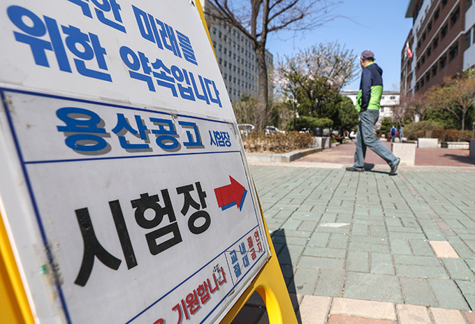 국가기술자격시험이 열린 서울 용산구 용산공업고등학교에서 수험생들이 시험장을 나서고 있다. 2020.4.5 (ⓒ뉴스1)