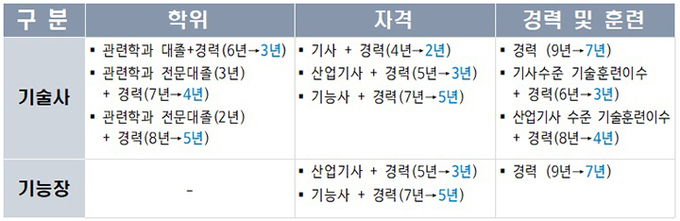 기술사·기능장 경력 응시자격 조정안