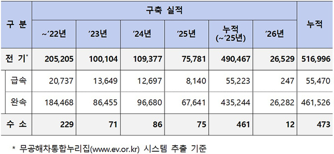 충전인프라 구축 현황(2026년 3월 31일 기준, 단위 : 기)