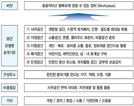 여기에 제시된 공간혁신의 3대 방향은 업무 효율, 직원 행복과 함께 사회적 책임을 강조한 것으로 요약할 수 있다.