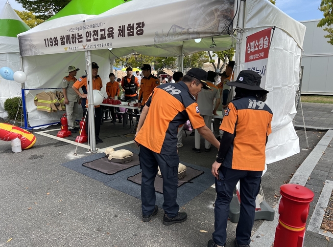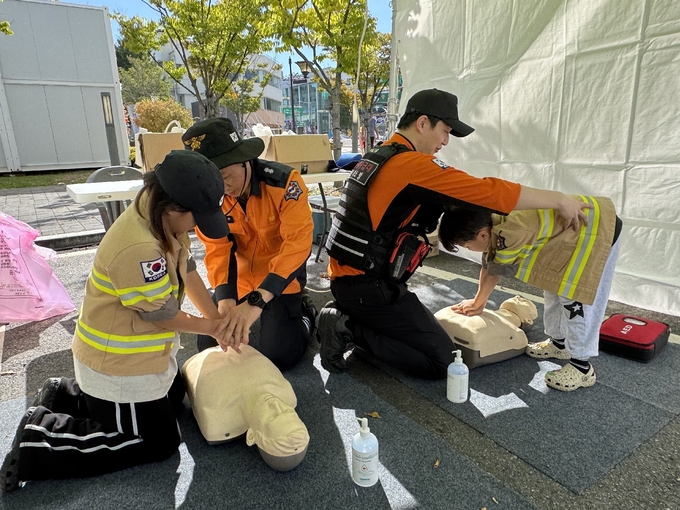 이번 체험부스에서는 남녀노소 누구나 쉽게 참여할 수 있도록 ▲심폐소생술(CPR) 및 자동심장충격기(AED) 사용법 ▲하임리히 응급처치법 ▲연기소화기 분사 ▲어린이 방화복 착용 및 포토존 사진촬영 등 실질적이고 유익한 프로그램이 진행됐다.