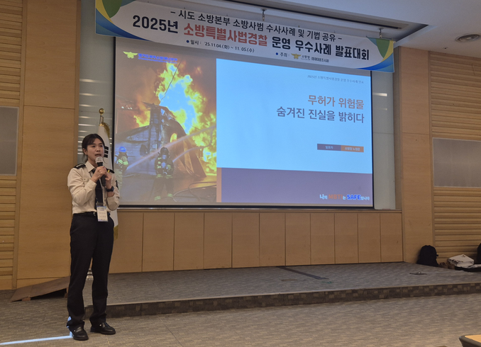 [한국방송/오창환기자] 소방청(청장 직무대행 김승룡)은 지난 11월 4일부터 5일까지 경북 문경에서 열린 「2025년 소방특별사법경찰 우수사례 발표대회」가 성황리에 마무리되었음을 밝혔다.