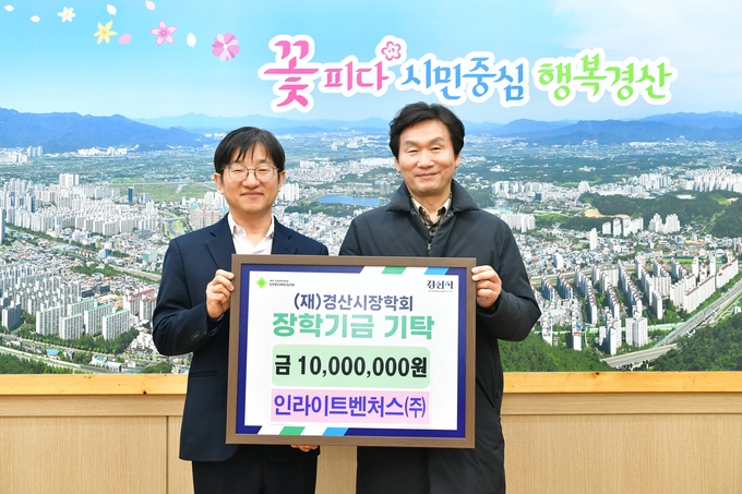 [경산/김근해기자] 경산시(시장 조현일)는 25일 벤처투자회사 인라이트벤처스㈜(대표이사 박문수)가 장학금으로 1,000만 원을 기탁했다고 전했다.