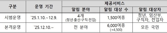 이에 시범운영 기간에 93만 명이 가입해 이용한 바, 청년·임산부·구직자·전입자 등에게 650만 건 이상의 공공서비스를 안내해 높은 호응을 얻고 있다.