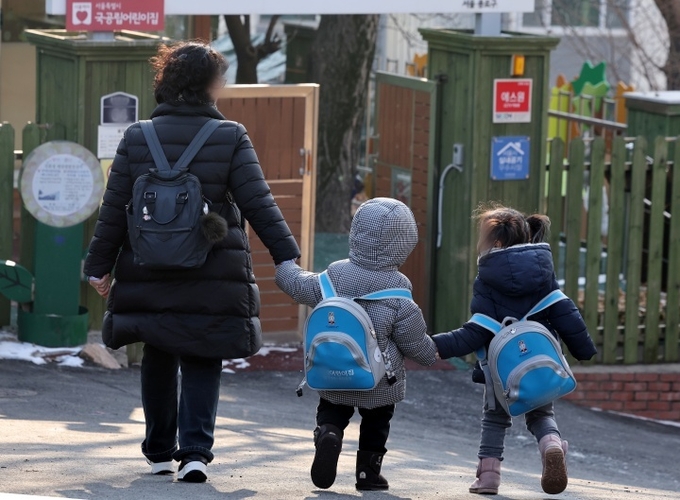 서울시내 한 어린이집에서 어린이들이 등원하고 있다. 2025.2.11 (ⓒ뉴스1)