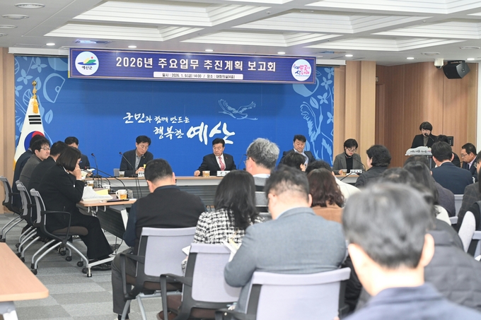 [예산/오창환기자] 예산군은 9일 군청 대회의실에서 ‘2026년도 주요업무 추진계획 보고회’를 열고 향후 군정 운영 방향과 분야별 주요 시책을 공유했다.