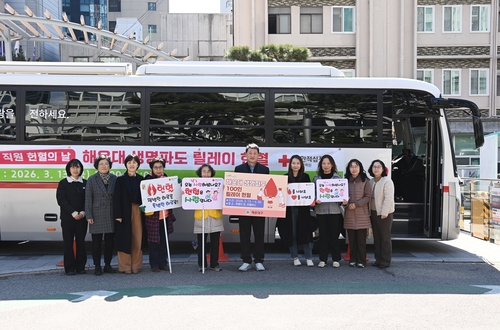 [부산/문종덕기자] 해운대구(구청장 김성수)는 13일 구청 광장에서 '해운대 생명파도 100인 릴레이 헌혈'을 시작했다.