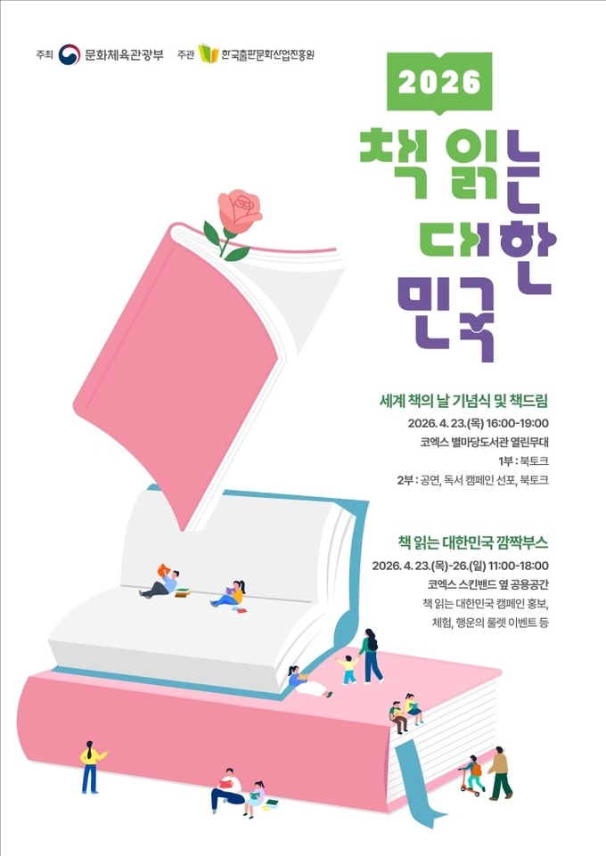 [한국방송/문종덕기자] 문화체육관광부는 한국출판문화산업진흥원, (재)책읽는사회문화재단과 함께 23일 오후 4시 서울 코엑스 별마당도서관에서 최휘영 장관이 참석한 가운데 대국민 독서 캠페인 '2026 책 읽는 대한민국'의 시작을 선포하고 캠페인을 본격 추진한다.