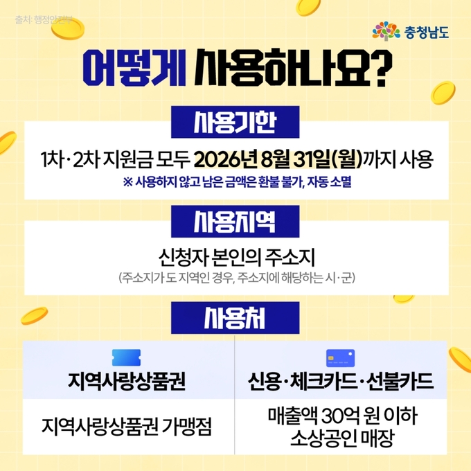 시군 누리집과 누리소통망(SNS)은 물론, 지역별 맘카페와 블로그 등 온라인 커뮤니티를 통해 대상자 확인 방법, 요일제 운영, 사용처 안내 등 핵심 정보를 집중적으로 전파하여 도민과의 소통 접점을 넓힐 방침이다.