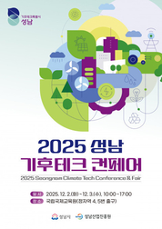 [성남/최동민기자] 성남시가 주최하고 성남산업진흥원이 주관하는 ‘2025 성남 기후테크 컨페어’가 오는 12월 2일(화)부터 3일(수)까지 이틀간 성남시 분당구 정자동에 위치한 국립국제교육원에서 개최된다. 이번 행사는 기후위기에 선제적으로 대응하고, 성남 기후테크 산업의 성장 기반을 다지며, 시민과 기업이 함께 참여하는 도시 단위의 기후테크 생태계를 조성하기 위해 마련됐다. 이번 행사에서는 前(전) UN IPCC(기후변화에 관한 정부간 협의체) 의장이었던 이회성 무탄소연합회장의 기조연설을 시작으로 대표 시민참여 프로그램인 ‘도전! 성남 기후 골든벨’, 기후 기술과 환경 상식을 쉽고 재미있게 전달하는 기후테크 O/X 퀴즈대회, 그리고 성남시 기후테크 기업이 1년간의 기술 성과를 시민 앞에서 발표하고 우수 기업을 시민평가단이 직접 선정하는 ‘Master of Masters 성남시 기후테크 기업 성과공유회’ 등 다양한 프로그램을 구성해 선보일 예정이다. 행사 첫째 날인 12월 2일 오전 10시 30분, 국제홀에서 개막식이 열리며, 개막식 프로그램의 하나로 시민과 관내 기업 및 기관 관계자가 함께 ‘기후테크특별시 성남’을 선포하는 비전선포식이 진행된다. 이어 정오에
