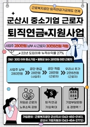 [군산/김주창기자] 군산시가 중소기업과 소상공인 근로자들이 폐업 등으로 퇴직금을 제대로 받지 못하는 사례가 증가함에 따라, 근로자 노후소득 보장을 강화하기 위해 ‘퇴직연금 추가 지원사업’을 전국 최초로 오는 3월 이후 시행한다. 이번 사업은 근로복지공단 중소기업 퇴직연금기금제도(푸른씨앗) 가입 사업장을 대상으로 하며, 30인 이하 중소기업(소상공인 포함)에서 근무하는 전년도 월평균 보수 281만 원 미만 근로자가 지원 대상이다. 근로복지공단은 해당 근로자에 대해 사업주가 납부한 퇴직연금 부담금의 20%를 지원하고 있다. 이 중 10%는 사업주에게 환급되어 경영 부담을 완화하고, 10%는 근로자 퇴직연금 계좌에 적립된다. 군산시는 여기에 더해, 공단이 근로자에게 적립해 주는 금액의 10%를 추가로 지원해 근로자 퇴직연금 계좌에 별도로 적립해 준다. 예를 들어, 사업주가 퇴직연금 부담금으로 280만 원을 납부할 경우, 공단에서 28만 원을 사업주에게 환급하고, 28만 원을 근로자 계좌에 적립하며, 군산시가 2만8천 원을 추가로 적립해 근로자의 실질 적립액은 총 30만 8천 원으로 확대된다. 이에 따라 근로자는 추가 부담 없이 더 많은 퇴직연금을 적립할 수 있어