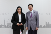 [부산/문종덕기자] 부산시(시장 박형준)는 어제(19일) 오후 4시 40분, 시청에서 소라야 마르티네스 페라다(Soraya Martinez Ferrada) 몬트리올시장을 단장으로 한 몬트리올시 대표단을 접견하고 문화․창의산업, 관광, 도시정책 등 다양한 분야에서의 협력 확대 방안을 논의했다고 밝혔다. 이번 몬트리올시 대표단은 몬트리올 문화예술위원회, 몬트리올상공회의소, 문화․창의 분야 기관 및 기업 관계자 등 50여 명 규모로 부산을 방문했다. 박 시장은 “자매도시 몬트리올 대표단의 부산방문을 진심으로 환영한다”라며, “부산과 몬트리올은 문화와 창의산업을 기반으로 도시 경쟁력을 높이고 있다는 공통점을 가진 도시”라고 말했다. 이어, “앞으로 문화예술 교류와 창의산업 협력, 관광, 도시정책 교류 등 다양한 분야에서 협력을 확대해 나가자”라고 페라다 시장에게 말했다. 박 시장은 이 자리에서 부산의 글로벌 허브도시 비전을 공유하고, ▲문화·예술 분야 ▲관광마이스산업 활성화 ▲도시정책 ▲인공지능(AI) 관련 첨단산업분야 등에서 양 도시 간 실질적인 협력 방안을 논의했다. 페라다 시장은 “따뜻하게 환대해주셔 감사하다”라며, “2025년 11월 시장으로 취임 이후 첫