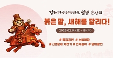 [김해/문종덕기자] (재)김해문화관광재단(대표이사 최석철)이 운영하는 김해가야테마파크가 오는 2월 14일부터 18일까지 설날 특집 행사 '붉은 말, 새해를 달리다'를 개최한다. 가야테마파크는 긴 설 연휴를 맞아 가족 단위 방문객들이 함께 즐길 수 있도록 각종 할인 혜택과 민속놀이 체험, 공연·이벤트 등 다채로운 프로그램을 마련했다. 붉은 말의 해를 맞아 명절 분위기를 한층 끌어올리는 민속공연과 퍼포먼스도 펼쳐진다. 야외 공연장에서는 ▲16일 전통예술단 '흥' ▲17일 퓨전국악 '처랏' 공연이 진행되며, 연휴 기간인 ▲14일부터 18일까지는 매일 '매직 벌룬 쇼'가 운영돼 관람객들에게 즐거움을 선사한다. 이와 함께 누구나 참여할 수 있는 '손금·타로 무료 운세자판기'를 설치해 새해 운세를 재미있게 확인할 수 있도록 했으며, 수로공연장과 가야왕궁 일원에는 전통 '민속놀이존', '세배 포토존'을 조성해 온 가족이 함께 즐길 수 있는 체험 공간을 마련했다. 연휴를 맞아 풍성한 할인 이벤트도 준비됐다. 연휴 시작일인 2월 14일부터 정월대보름인 3월 2일까지 말띠 방문객과 국내 거주 외국인을 대상으로 주요 패키지 상품을 최대 12% 할인된 가격으로 제공한다. 지난 1