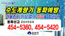 [군산/김주창기자] 군산시가 동절기 한파로부터 계량기 동파 및 수도관 동결 예방을 위해 오는 2월까지 ‘동파 방지 종합대책’을 추진한다. 먼저 동파 예방요령에 대한 안내 전단을 제작, 읍면동 주민센터와 수도검침원 등을 통해 가정·회사·기타 사업체에 배포를 완료했다. 또한 계량기 보온상태 등 관리 상태 점검도 꾸준하게 하는 한편, 한파특보가 발효되면 ‘마을방송’을 신속하게 운영해 동파 방지 예방에 적극 대응중이다. 이외에도 수도관 동파 발생 대비 긴급처리상황반 운영, 동파 계량기 신속 교체, 수도관 동파나 누수지 긴급 복구 등을 추진하고 있다. 특히 최악의 기상 조건으로 수도관이 동파되어 단수지역이 발생할 경우에는 비상급수차량 지원과 수자원공사 협조를 통한 병입 수돗물을 공급할 계획이다. 시는 시민에게도 수도계량기와 노출된 수도관을 보온재 등으로 감싸 보호하도록 하고, 연립주택 및 아파트는 출입문과 창문 등으로 찬 공기가 유입되지 않도록 하는 등의 동참을 요청하고 있다. 군산시 수도과 관계자는 “갑작스러운 한파로 인하여 기온이 급강하하거나 보온을 해도 동파 위험이 있는 경우는 수도꼭지를 약간 열어서 수돗물이 흐르는 상태를 유지해야 큰 피해를 방지할 수 있다.”